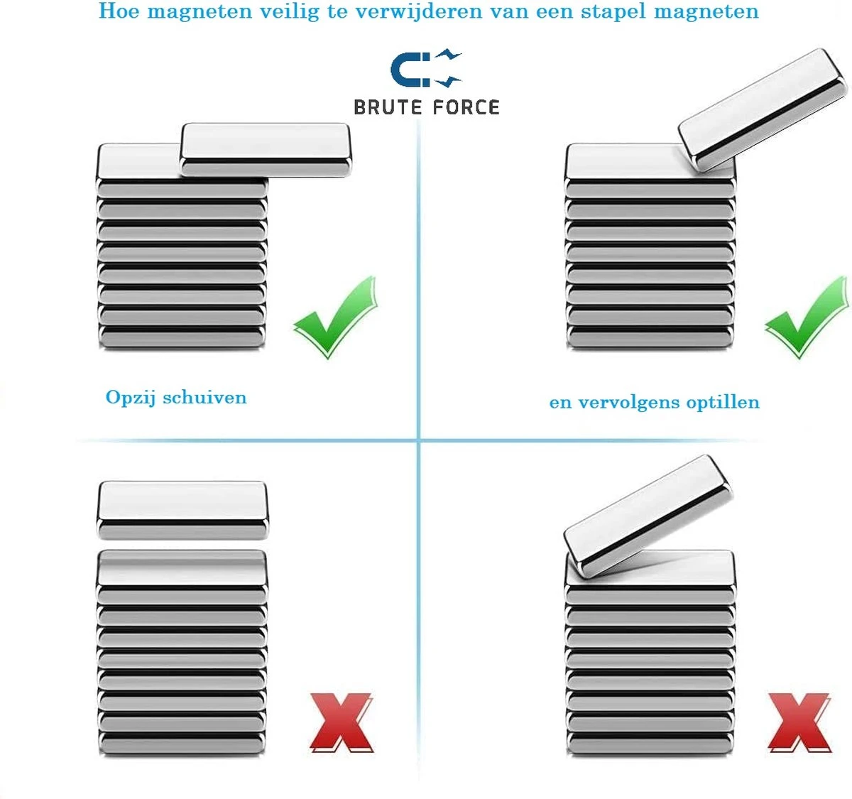 Dit type blokmagneet is door zijn grote en type 1 van de sterkst mogelijke magneet van zijn soort, denk dus goed om uw vingers. Dit product is niet geschikt voor kleine kinderen. Gebruik door volwassenen of onder toezicht van raden wij sterk aan. Vermijdt ook contact met uw elektronische apparatuur (zoals uw laptop, telefoon, tv etc.)