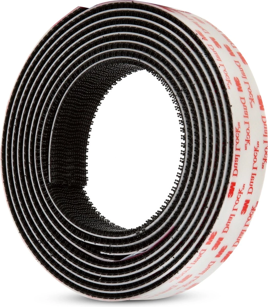 Deze 3Mâ„¢ Dual Lockâ„¢ druksluiting strip van 25,4 mm breed bestaat uit polypropyleen. De gladde achterkant beschikt over een laag acryl-lijm, ofwel 3M, waardoor het gemakkelijk vast blijft zitten aan verschillende oppervlaktes.