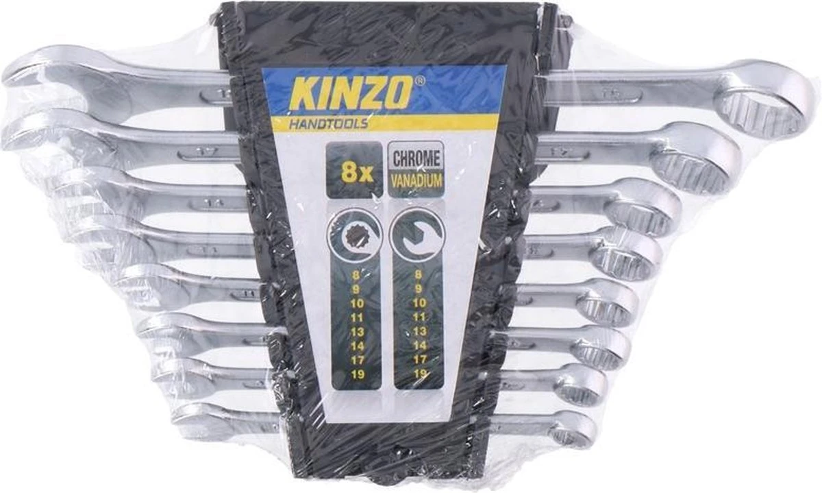 Een fijne set voor elke klusser. Met deze steek- ringsleutelset van Kinzo heb je alles bij de hand voor elke klus. In het pakket van 8 zitten steek- en ringsleutels van 8 mm tot 19 mm. Dat zijn de meest gangbare maten. De sleutels zijn vervaardigd uit het oersterke chroom-vanadiumstaal. Ze zijn niet onderhevig aan corrosie en je zult er lang plezier van hebben.