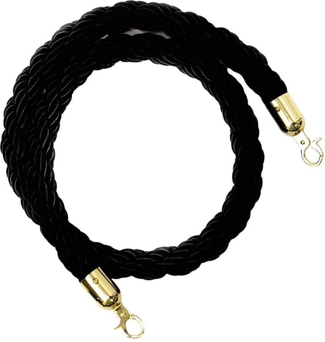 Ons afzetkoord Zwart/Goud Luxe geeft uw entree of rode loper de allure die het verdient. Het afzetkoord is zwart van kleur en heeft een gouden sluiting. Deze sluiting heeft een veertje en blijft altijd dicht zitten. De afzetkoorden zijn standaard 150 cm lang.