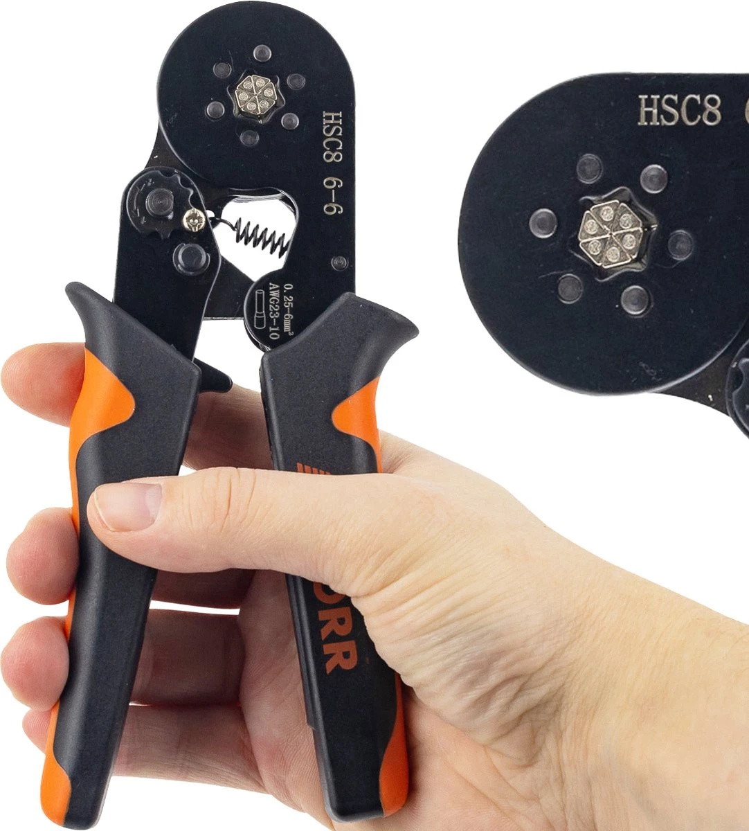 De ALDORR Adereindhulstang is een ideaal hulpmiddel voor het verbinden van draden en kabels. Met behulp van de adereindhulstang verbindt u de adereindhuls eenvoudig met de kabel. De kabel is vervolgens eenvoudig aan te sluiten. De tang maakt gebruik van zij-invoering en heeft een zeskante krimp. Het krimpbereik van de tang is 0,25 tot 6 mm2 (AWG 23-10) voor zowel geïsoleerde als niet-geïsoleerde aderhulzen. De adereindhulzen worden niet meegeleverd. Heeft u hier interesse in? Bekijk dan onze sets, waarbij de tang en adereindhulzen samen geleverd worden.