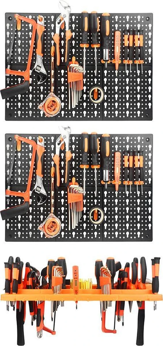Met deze gereedschapwanden sla je al je gereedschap overzichtelijk op. Door de vele bevestigingsmogelijkheden kan je al je gereedschap kwijt. De uitgebreide accessoires set bevat verschillende soorten houders en haken voor allerlei gereedschap. De wand bestaat uit twee losse delen die ieder afzonderlijk gebruikt kunnen worden.