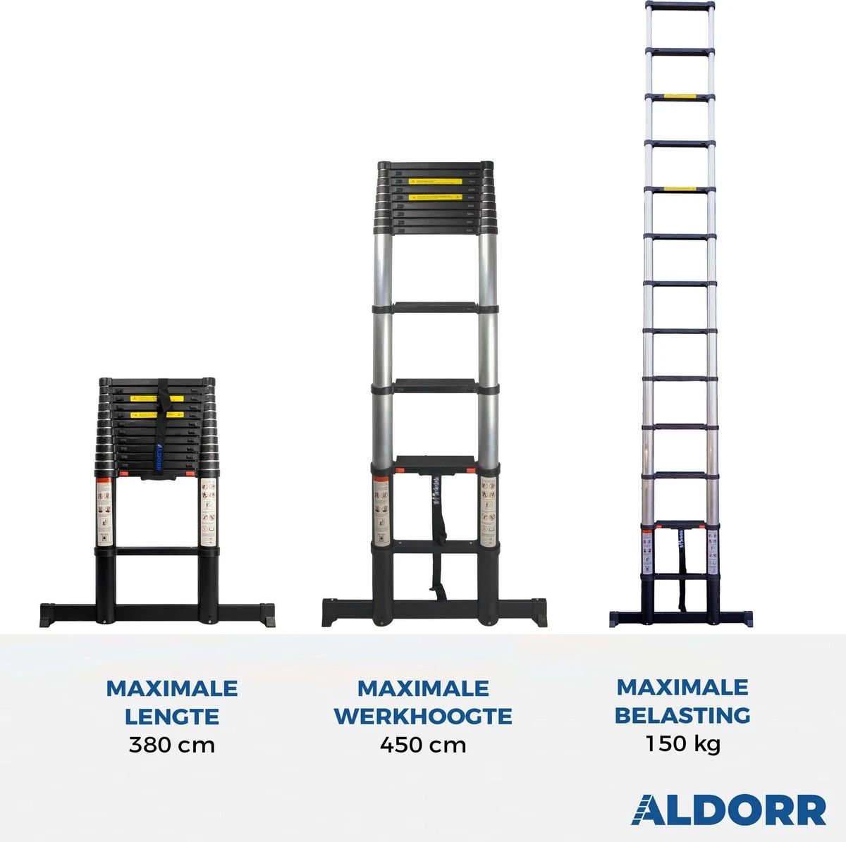 ALDORR Professional telescopische ladder met ALDORR Optigripâ„¢, extra brede treden en nieuwste type soft-closing