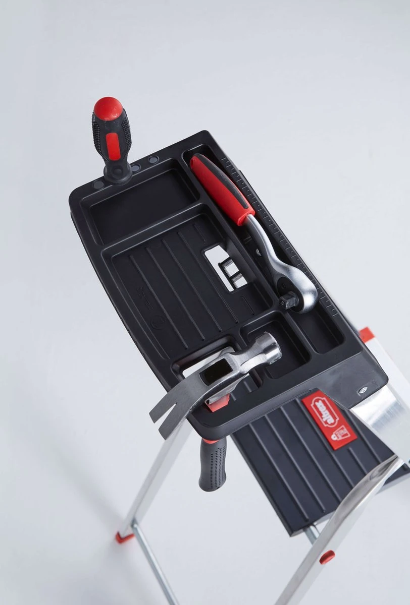 Deze Altrex Lima huishoudtrap is bij uitstek geschikt voor kleine klussen in- en rondom het huis. Den bijvoorbeeld aan het verven van muren of het schoonmaken van ramen. De trap heeft een licht gewicht, anti-slip voeten voor meer stabiliteit en als laatste afgeronde treden en een kniebeugel.