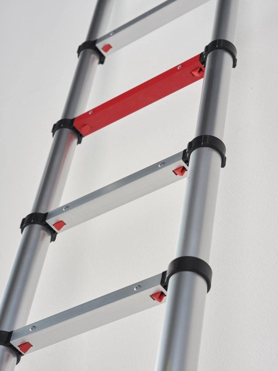 Door het soft-close mechanisme kun je met één beweging de telescoopladder ontgrendelen. Hierdoor schuift hij automatisch en geleidelijk in. Dit gaat op een veilige manier, want je wil natuurlijk niet je vingers er tussen krijgen.