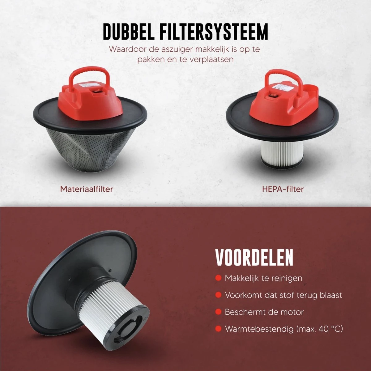 - Warmtebestendig – De aszuiger kan stofdeeltjes opzuigen van wel liefst 40 °C. Zo hoef jij niet uren te wachten tot je haard is afgekoeld.