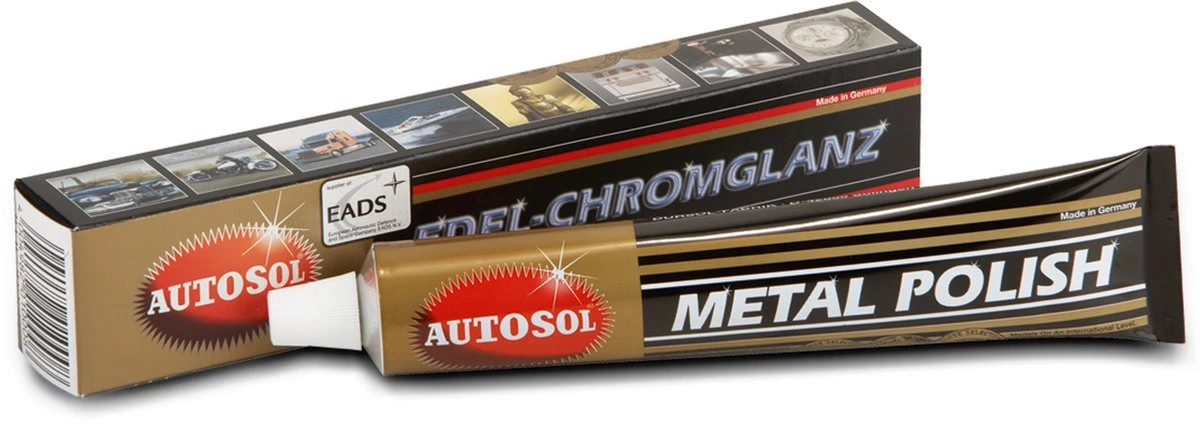 Metaal polijstpasta van Autosol met slijpmiddel. Hiermee krijgt u alle metalen weer glanzend. Ideaal voor het poetsen van metaal dankzij de krachtige polijstende werking.