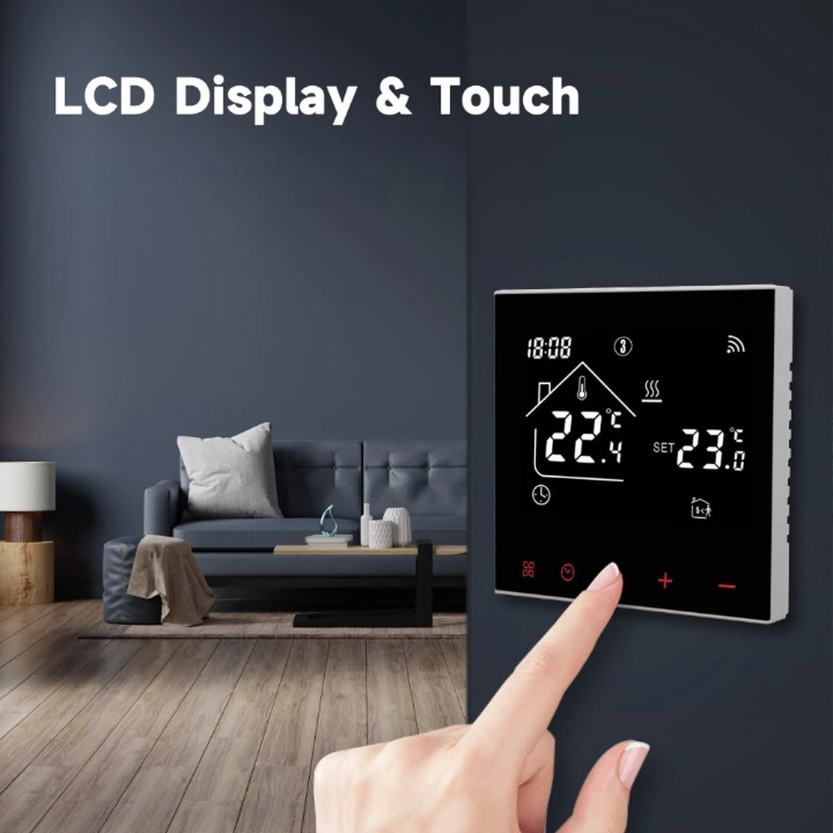 Met deze slimme thermostaat heeft u de volledige controle over uw verwarming voordat u zelfs maar thuiskomt. Dankzij de eenvoudig te gebruiken app, Smart Life, kunt u de thermostaat bedienen via uw mobiele telefoon, waar u ook bent. Dankzij de WiFi-bediening kunt u de verwarming op afstand instellen, zodat uw huis lekker warm is wanneer u thuiskomt.