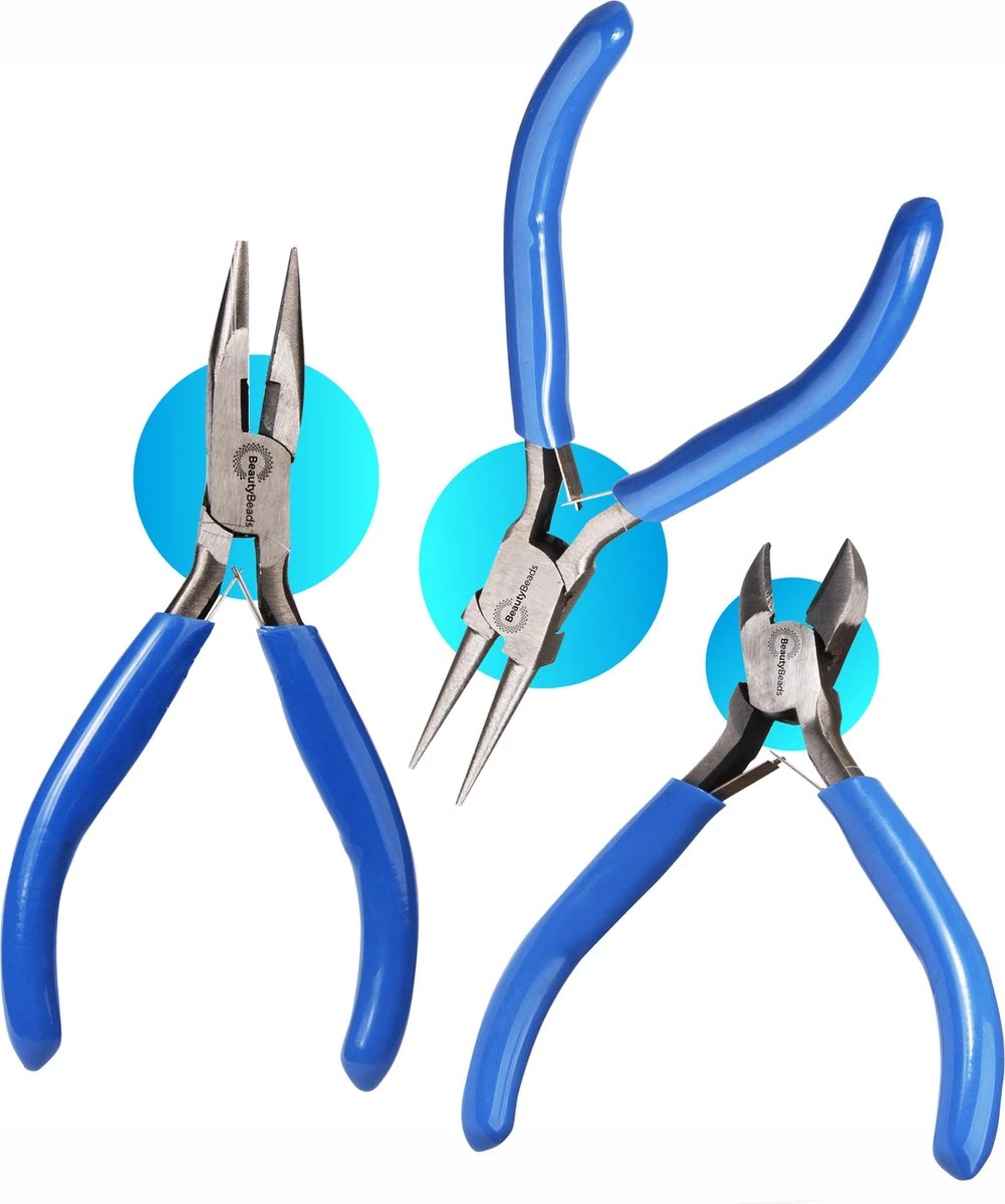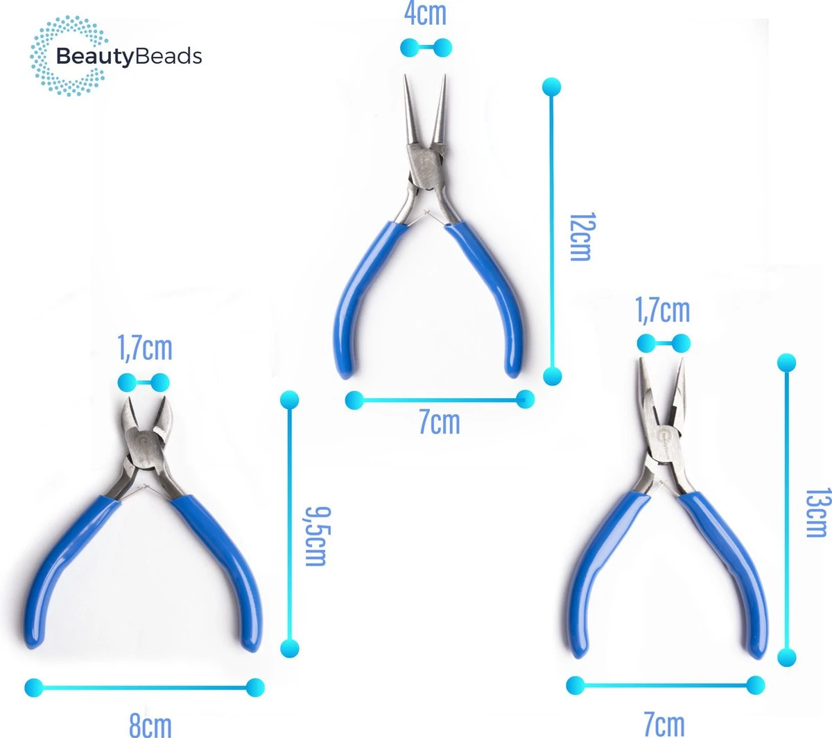 De tangen zijn hét hulpmiddel voor het maken en repareren van allerlei soorten sieraden en juwelen – voor het vervaardigen van kralenkettingen tot armbanden, oorbellen en meer… De mogelijkheden zijn eindeloos. De set bestaat uit 3 praktische tangen: