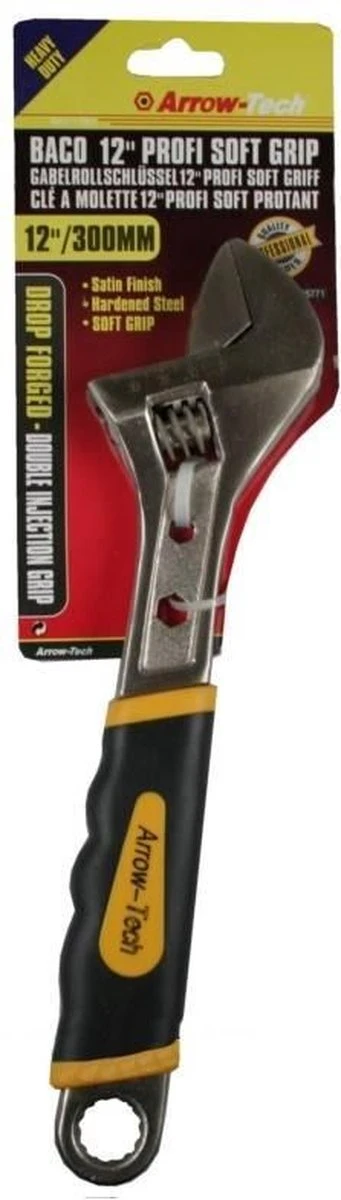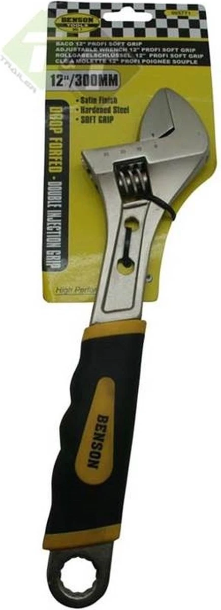 Deze engelse sleutel wordt op dezelfde manier gebruikt als een steeksleutel, maar is verstelbaar met een schroef en kan aan elke zeskantige of vierkante moer of bout kop tot 35 mm worden aangepast.