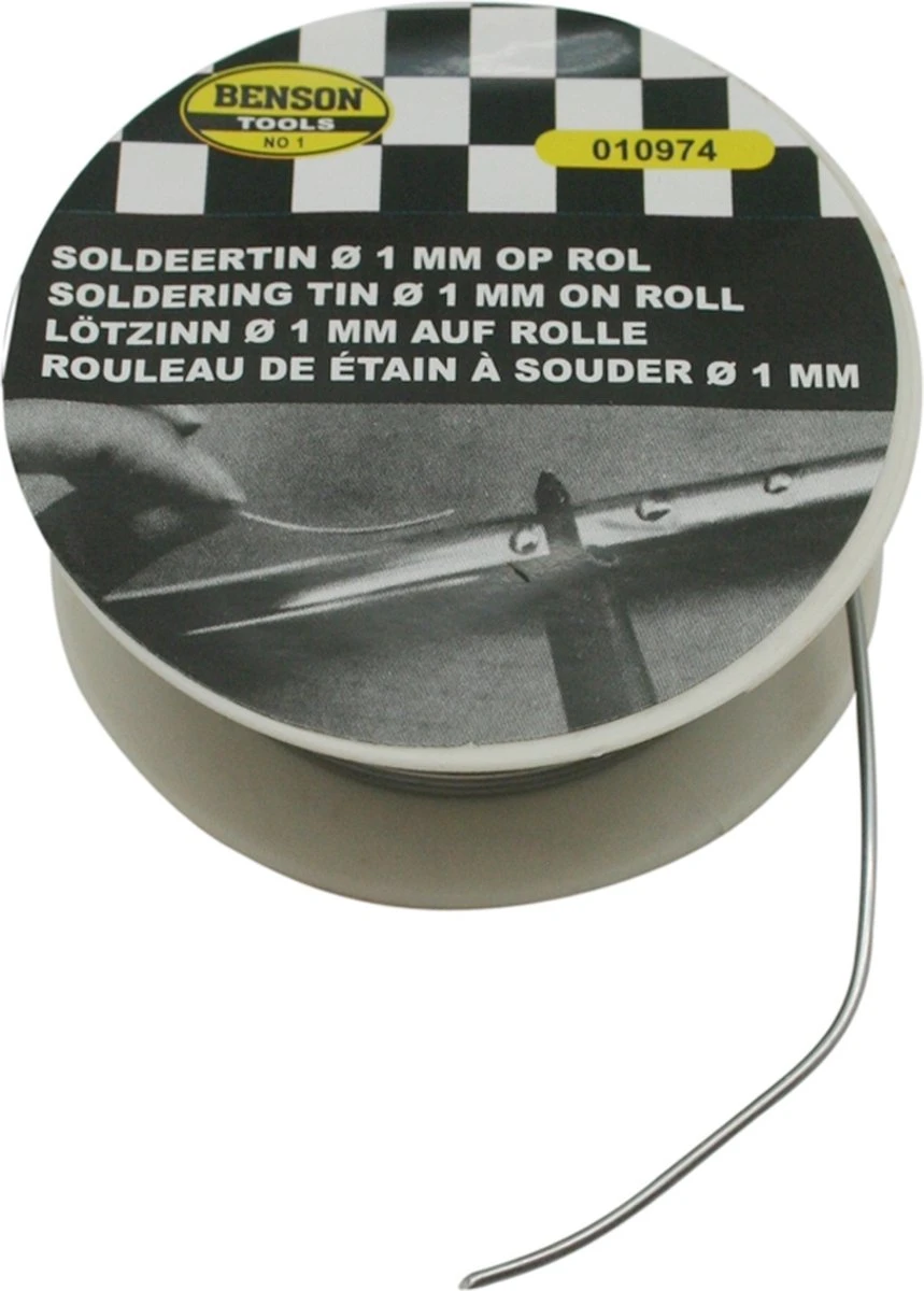 Universele soldeertin op rol (60 gram), geschikt voor gebruik in electronica toepassingen. De rol bevat 8 meter tin, genoeg voor een grote hoeveelheid klussen! het draad heeft een diameter van 1 mm en heeft een harskern zodat de soldeertin beter over de soldeerverbinding vloeit. Dat maakt het solderen makkelijker en de verbinding steviger.