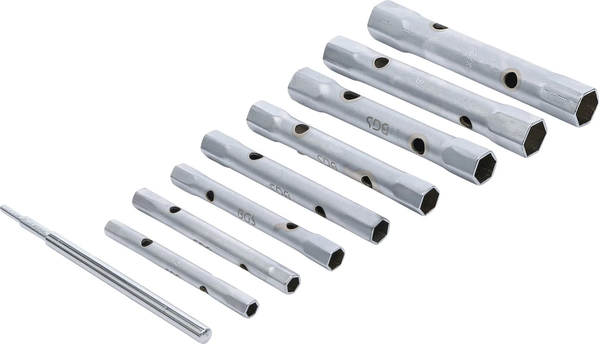 BGS technic Pijpsleutelset | 6 x 7 – 20 x 22 mm | 9-dlg (1218) oppervlakte:mat verchroomdGewicht:0.96 kgBreedte:8 cmHoogte:8 cmLengte:21 cm