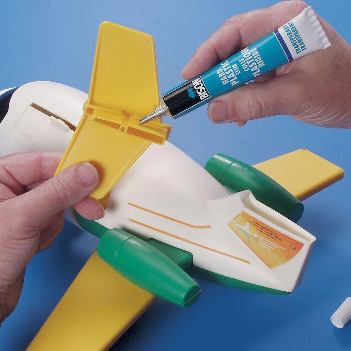 Transparante lijm voor hard plastic materialen. Waterbestendig. Lijmt kunststoffen die in het huishouden voorkomen, zoals ABS, acrylglas (perspex en plexiglas), polycarbonaat (lexan) en hard pvc. Niet geschikt voor polyethyleen (PE) en polypropyleen (PP).