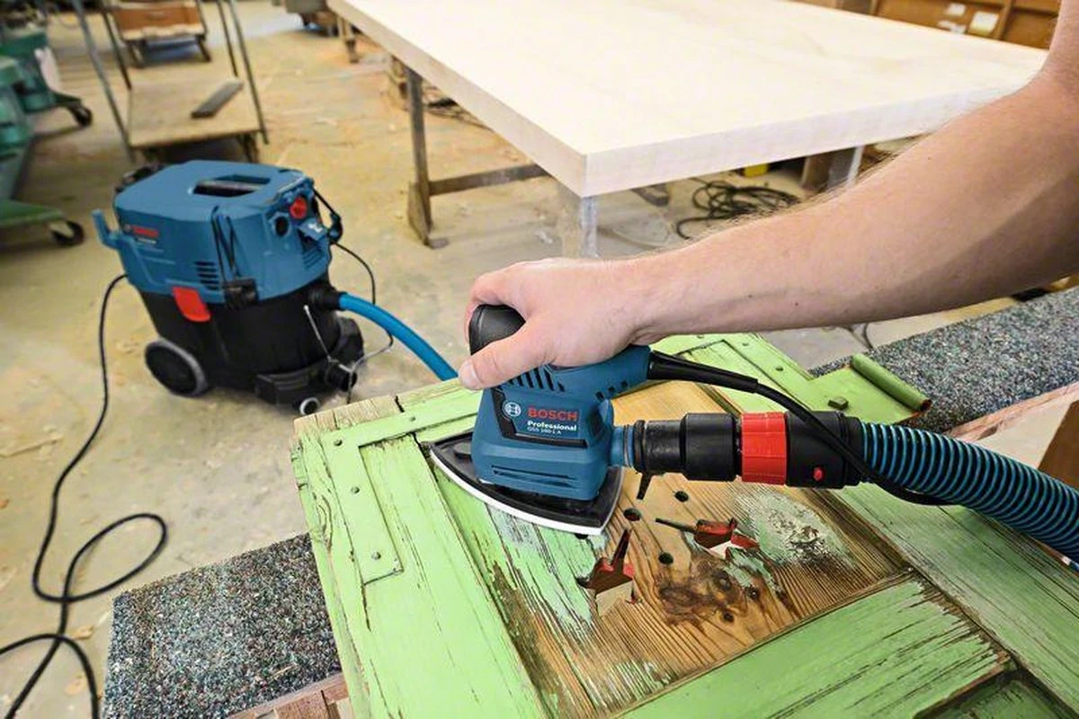 De vlakschuurmachine is bedoeld voor het schuren van kleine vlakke oppervlakken, grof en fijn schuren en oppervlakafwerking. De machine is geschikt voor het schuren van hout, fineer, lak, vulmiddel evenals steen- en kunststofoppervlakken. De machine is compatibel met het Bosch Click & Clean System.