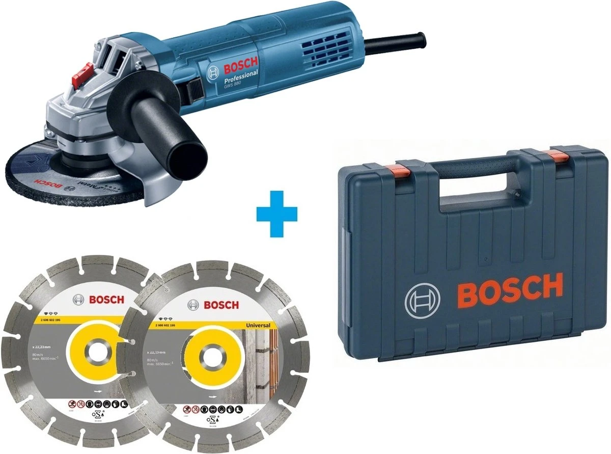 Bosch haakse slijper – GWS 880 – inclusief 2 diamantzaagbladen – in transportkoffer – met accessoireset – 060139600B