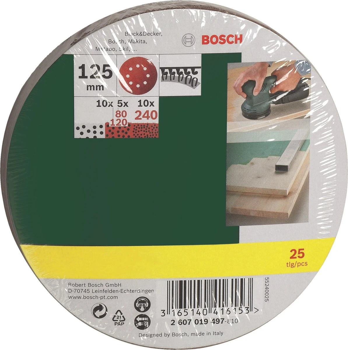 Bosch Schuurbladenset – 25-delig – 125 Mm (korrel 240, 120, 80)