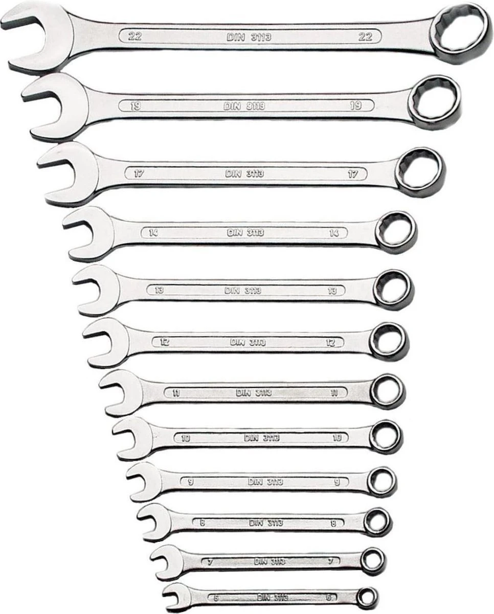 •BRÜDER MANNESMANN 12-delige Ring Steeksleutel Set (Maat 6 t/m 14, 17, 19 en 22 mm).