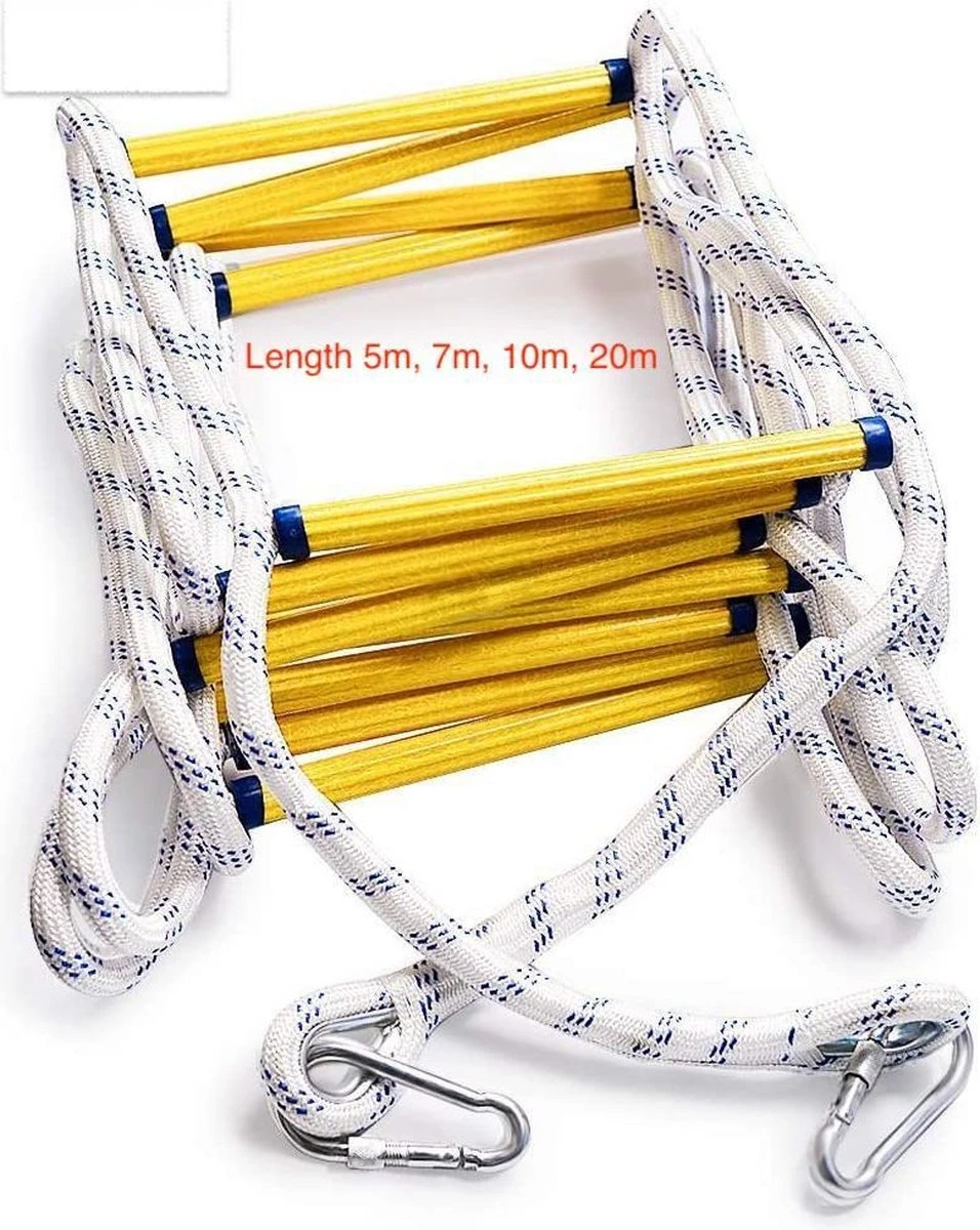 Brandladder om snel en veilig te vluchten in geval van brand in gebouwen met een verdieping. De brandladder is uitgevoerd met stevige antislip sporten, gemaakt van duurzaam kunsthars voor maximale stevigheid. Het product wordt geleverd met karabijnhaken om te bevestigen aan bijvoorbeeld balustrades en/of relingen. Lengte 10 meter; maximaal toelaatbaar gewicht liefst 150kg. Compact, dus eenvoudig op te bergen.
