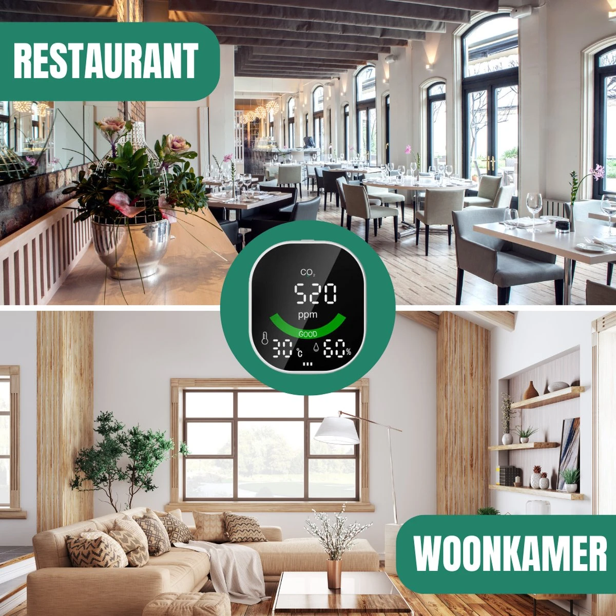 Geschikt voor grote en kleine ruimtes: De co2 meter past zich aan naar de ruimte waar het zich bevindt. De waardes voor grote ruimtes zijn net zo accuraat als de kleinere ruimtes. Dit is mogelijk vanwege de gevoelige sensoren die onze luchtkwaliteitsmeters bevatten.