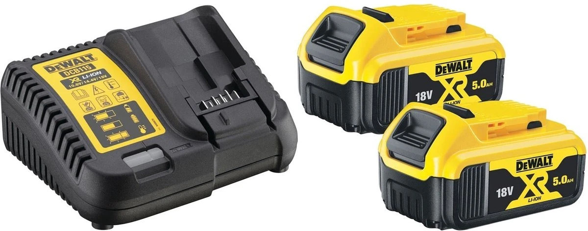 - 18V accu starterskit: 2x 5,0Ah XR 18V accu’s + lader DCB115