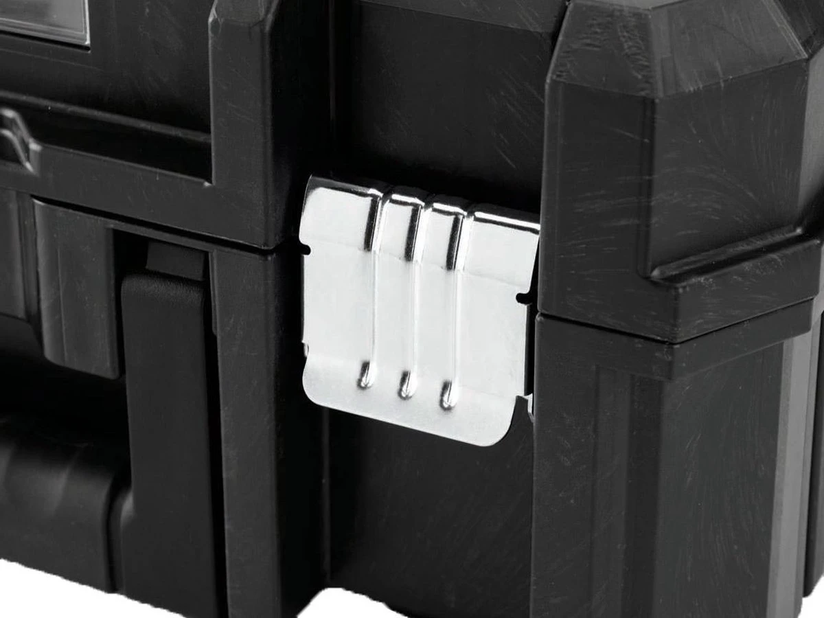 De DeWalt TSTAK gereedschapskoffers bieden door het modulaire stapelsysteem de perfecte oplossing voor het opbergen en vellig vervoeren van het gereedschap. De koffers hebben een stevig en duurzaam ontwerp. De TSTAK II heeft twee handvaten, zodat deze als koffer en als gereedschapskist kan worden gedragen.
