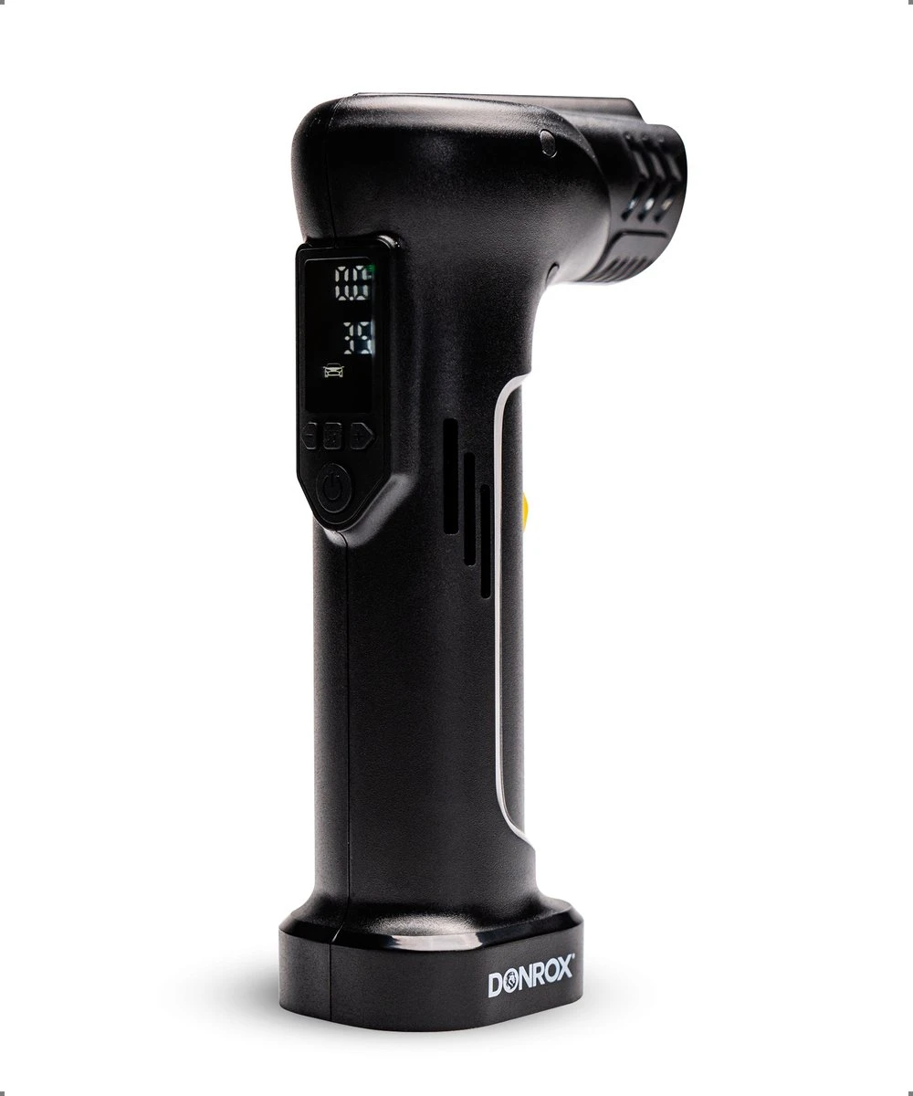 Met deze krachtige en veelzijdige 4-in-1 compressor heb jij overal en altijd een multifunctionele, USB oplaadbare luchtcompressor bij de hand. De in pistoolvorm ontworpen Donrox Ride A922 is een elektrische bandenpomp met digitale bandenspanningsmeter, powerbankfunctie en zaklamp. Ideaal om voor vertrek en onderweg de banden van je fiets, auto, motor of ander voertuig op spanning te brengen.