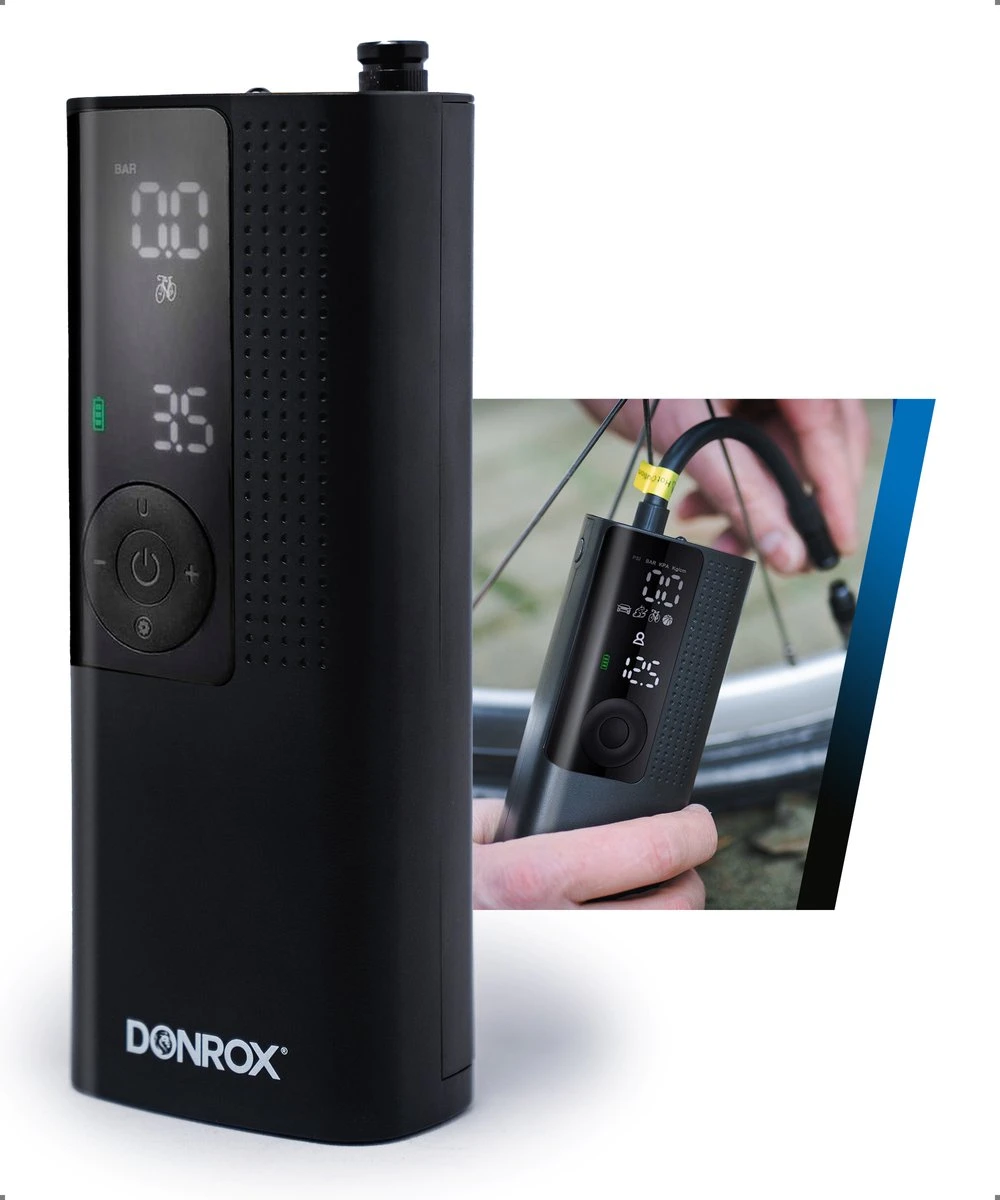 Met deze compacte en lichtgewicht 3-in-1 compressor heb jij overal en altijd een multifunctionele, USB oplaadbare luchtcompressor bij de hand. De in zakformaat vormgegeven Donrox Ride F522 is een elektrische bandenpomp met digitale bandenspanningsmeter en zaklamp. Ideaal om voor vertrek en onderweg de banden van je fiets, auto, motor of ander voertuig op spanning te brengen.