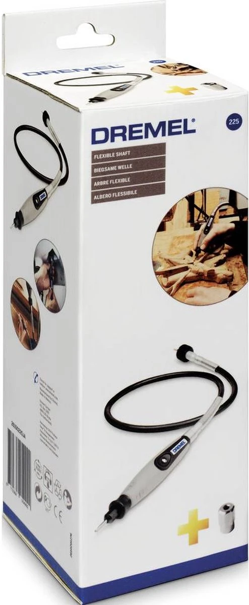 De Dremel flexibele as breidt je multigereedschap uit naar een compact, licht en comfortabel precisiegereedschap, perfect voor uiterst nauwkeurig graveren, polijsten en uitsnijden. Bevestig deze eenvoudig aan een compatibel Dremel multigereedschap en doe direct een nieuwe ervaring op door je accessoires met volledige controle voor je klussen te gebruiken. Met de softgrip kun je het gereedschap gedurende langere tijd als een pen vasthouden zonder vermoeidheidsverschijnselen te krijgen. Door de flexibiliteit van de as kun je moeilijk bereikbare of krappe plekken bereiken en de functies van je Dremel multigereedschap blijven bedienen. Zo gebruik je hem Pak hem als een pen vast voor een goede controle via je vingertoppen om je precisie bij het graveren, snijden, slijpen, schuren, polijsten en meer te maximaliseren.