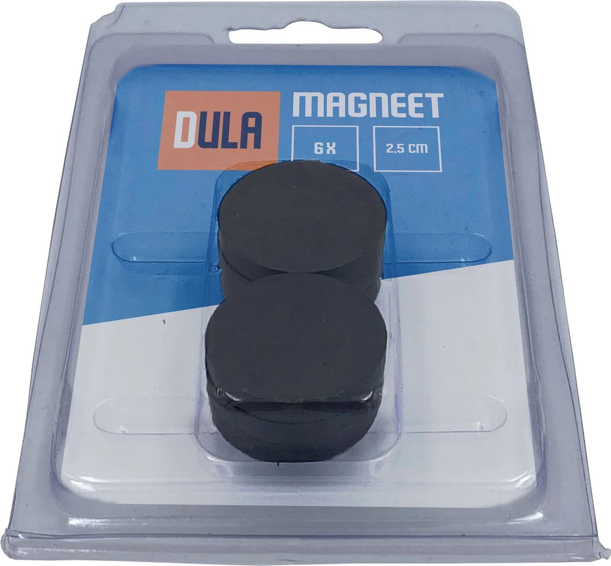 Elke verpakking DULA magneten bevat 6 stuks, er zijn dus genoeg magneten om aan alle behoeften van uw organisatie te voldoen. De magneten zijn gemaakt van hoogwaardige materialen en hebben een sterke houvast om je spullen veilig op te hangen.