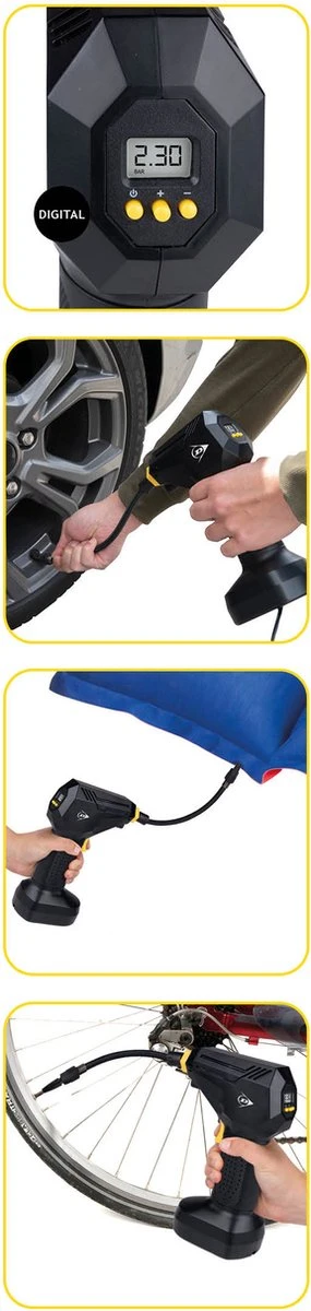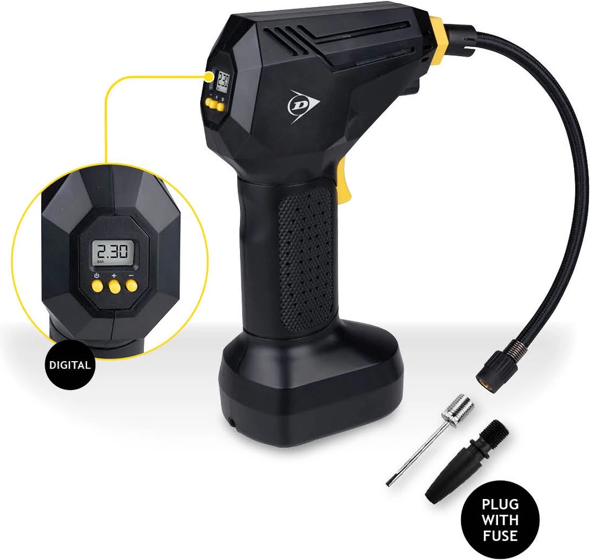 Dunlop Digitale Luchtcompressor – Bandenpomp – 12V – Digitaal Display – Max. 150PSI/ 10 Bar – Incl. Opbergtas En 2 Naalden – Autobanden En Opblaasartikelen