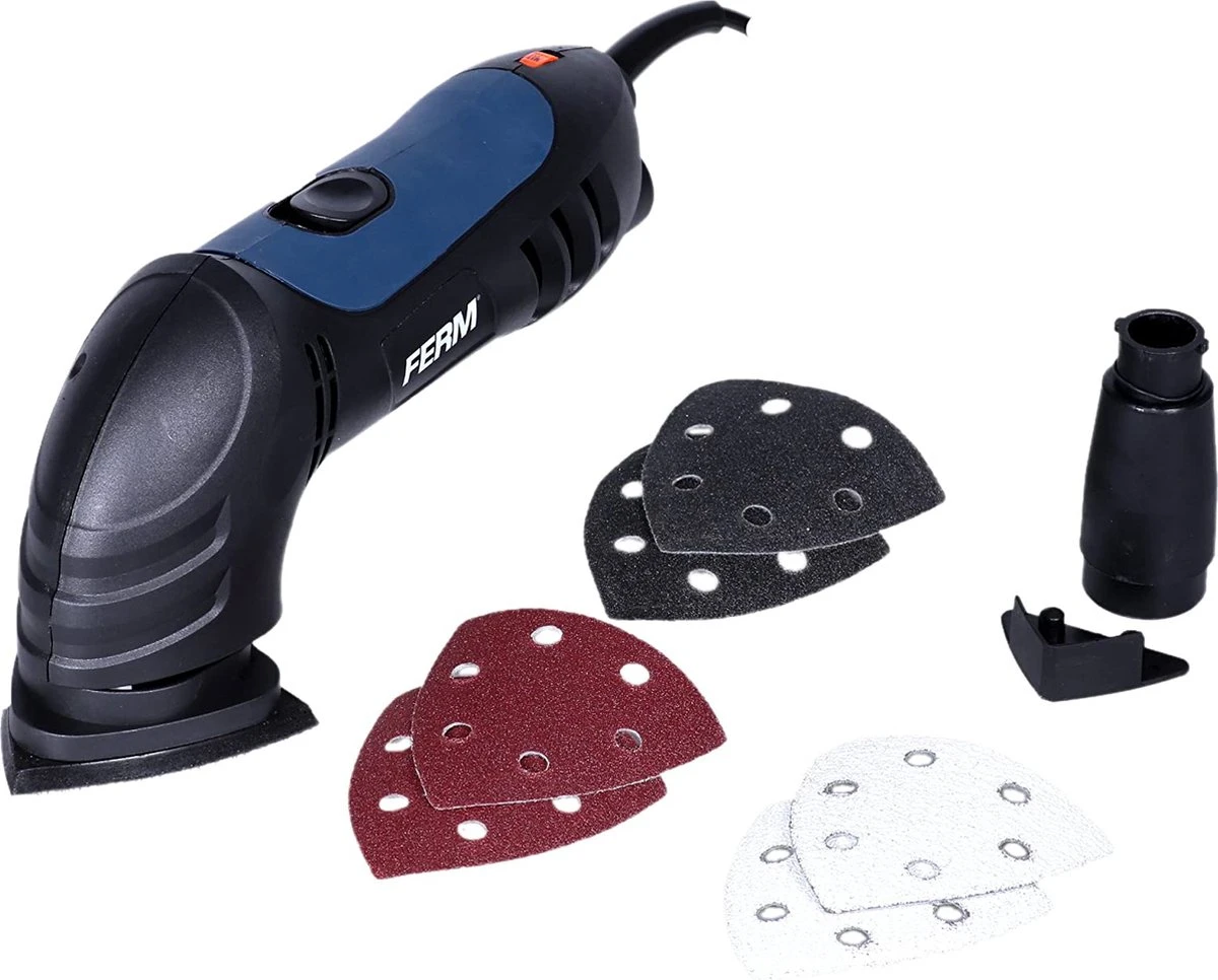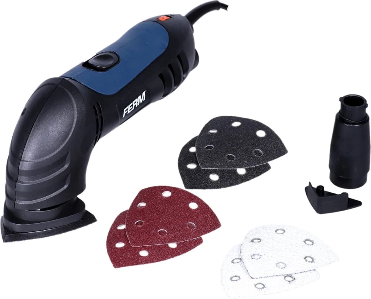 - Door zijn driehoekige schuurzool is de FERM DSM1009 Deltaschuurmachine uitermate geschikt voor precisie schuurwerkzaamheden