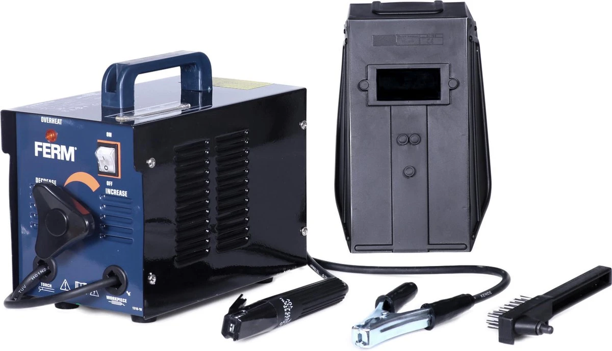 De WEM1042 is een compact 230V lasapparaat van FERM met een maximale lasstroom van 100 Ampère. Het lasapparaat is voorzien van ventilatorkoeling en thermische overhittingsbeveiliging met controlelamp, zodat het geen probleem is hem zwaar en langdurig te gebruiken.