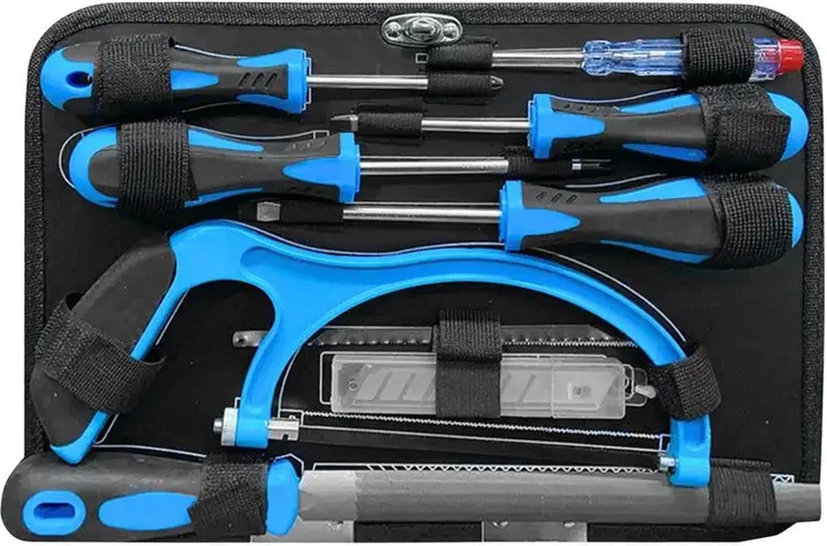 Een handige gereedschapskoffer die de perfecte basis- of eerste uitrusting bevat. Deze 241-delige gereedschapsset van chroom-vanadium- en koolstofstaal varieert van het klassieke schroevendraaierassortiment, een ratel met verschillende dopsleutels, meerdere tangen en combinatiesleutels tot een zaag en een groot bitassortiment inclusief lange bits. Waterpas, meterstok, hamer & co ontbreken natuurlijk ook niet. De koffer bevat ook een praktisch gesorteerde doos met verschillende bevestigingsmiddelen zoals spijkers en schroeven. Of het nu voor uw eigen huis is of als cadeau – deze alleskunner is de ideale keuze. Voor iedereen de perfecte basis- of instapuitrusting. 241-delige gereedschapsset van chroom-vanadium en koolstofstaal in handige koffer.