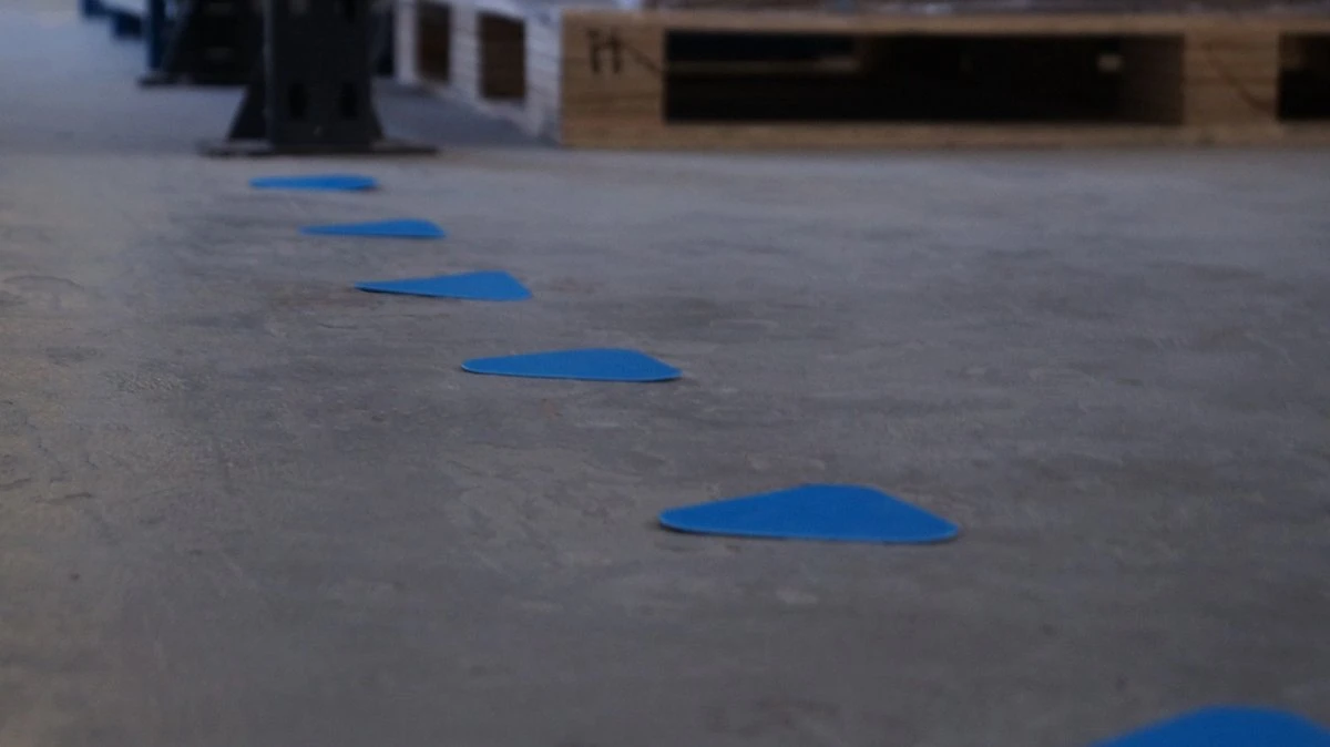 De vloermarkering driehoeken (haaientanden) zijn bij uitstek geschikt om voorrangsgebieden te markeren.