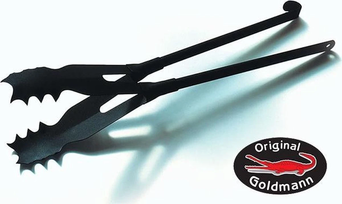 De originele Goldmanns krokodillentang. Super fijne tang om houtblokken in je open of gesloten haard te leggen. Uw vingers verbranden of een hand tekort hebben behoort tot het verleden.