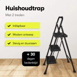 Rune Huishoudtrap 2 Treden – Inklapbare Anti-slip Keukentrap – Compact Design – 80 Cm Hoog – Zwart