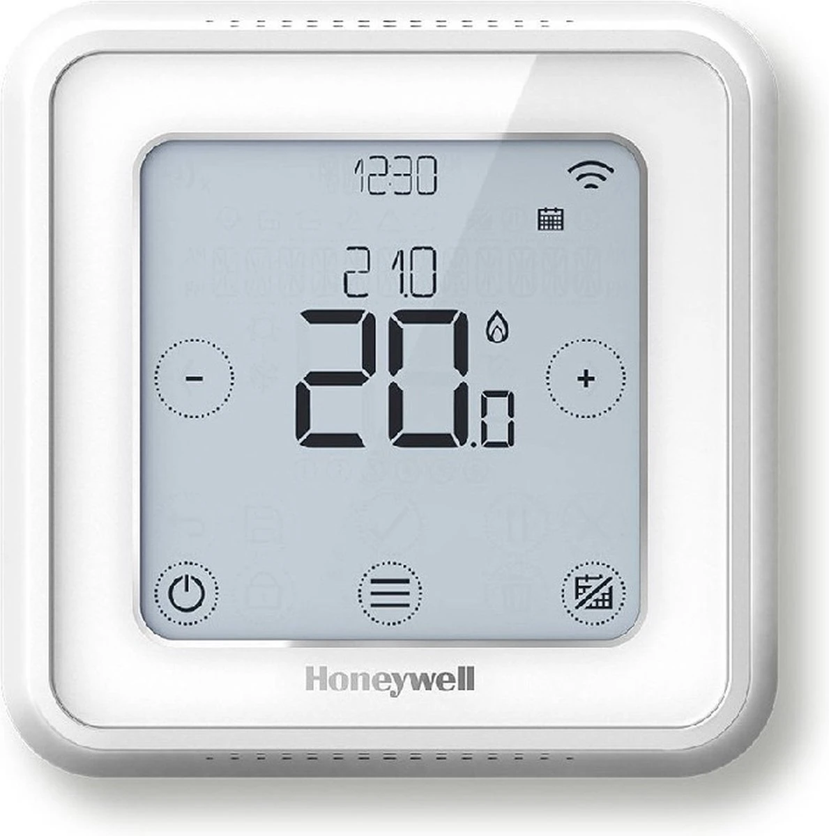 De witte Honeywell Lyric T6 (bedraad, voor wandmontage) is een slimme thermostaat die je helpt met het besparen van energie. De thermostaat weet namelijk precies wanneer er wel en niet verwarmd moet worden. De Lyric T6 leert zelf hoe lang het duurt voordat de gewenste temperatuur in huis bereikt is, waardoor je altijd de juiste temperatuur hebt op de ingestelde tijd. De thermostaat is eenvoudig te bedienen via het stijlvolle witte touchscreen of via de Lyric app op je iOS of Android apparaat. De Honeywell Lyric T6 biedt ondersteuning voor Apple HomeKit.