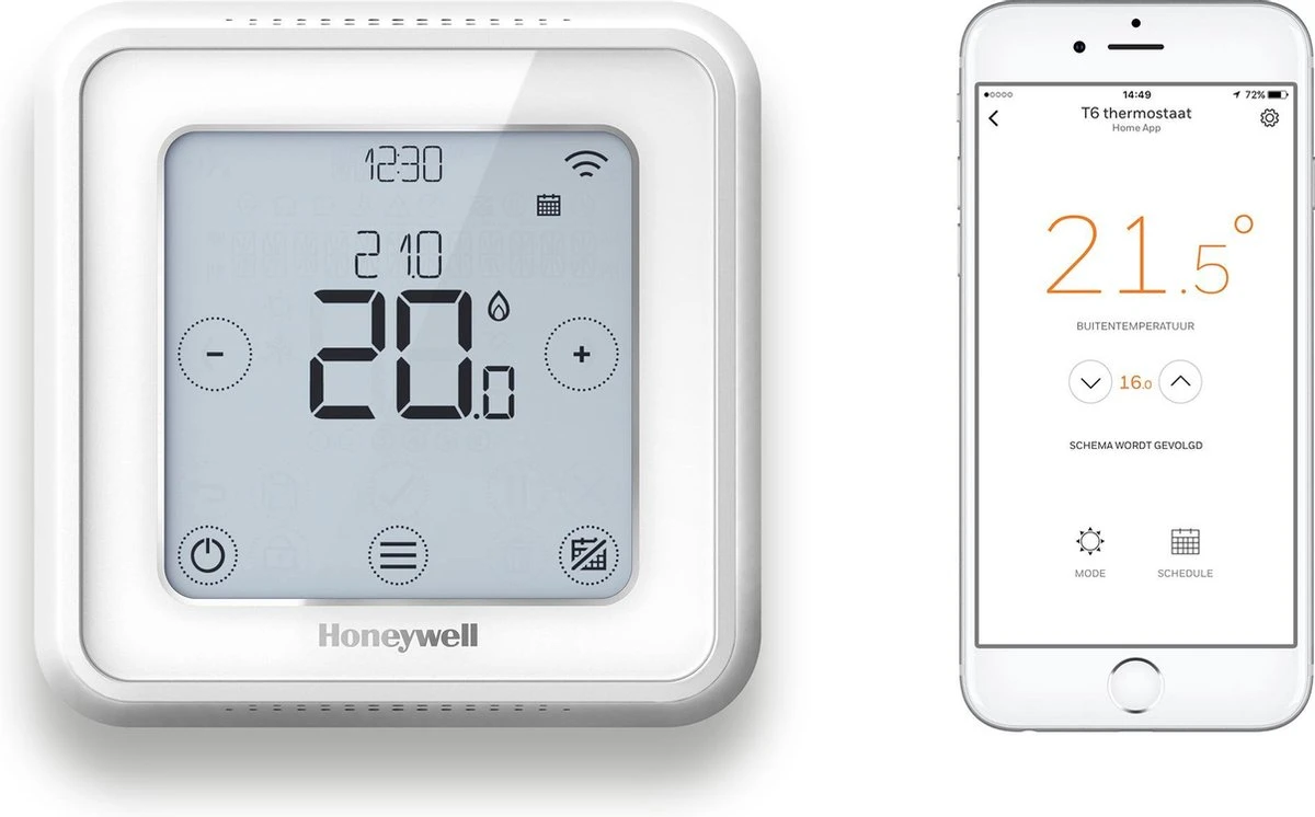 De Honeywell Lyric T6 slimme thermostaat bestaat uit de Honeywell Lyric T6 en de ketelmodule. De slimme thermostaat sluit je bedraad aan op de ketelmodule en de ketelmodule sluit je weer bedraad aan op je cv-ketel, stadsverwarmingsklep of warmtepomp. Wij adviseren je om vóór aanschaf de handleiding te bekijken (deze vind je Documenten onderaan de productspecificaties).