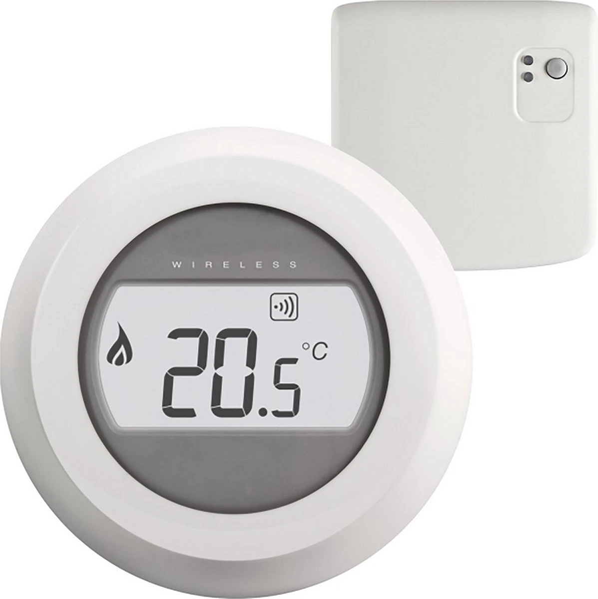 *Let op!* De draadloze Honeywell Round Wireless aan/uit thermostaat werkt op twee AA-batterijen (meegeleverd). De RF-module heeft wel stroom nodig en sluit je (met een snoer) bedraad aan op je cv-ketel of warmtepomp. De RF-module maakt via radio frequentie draadloos verbinding met de thermostaat. Omdat de thermostaat 100% draadloos is op batterijen, kun je deze op iedere gewenste plek in huis ophangen.