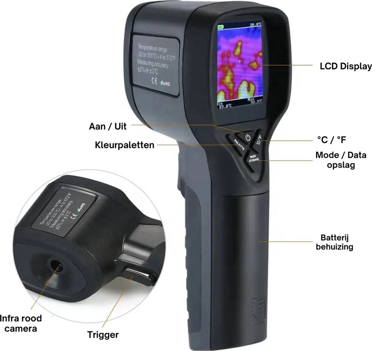 - Temperatuurmeetbereik: -20 tot +300 °C