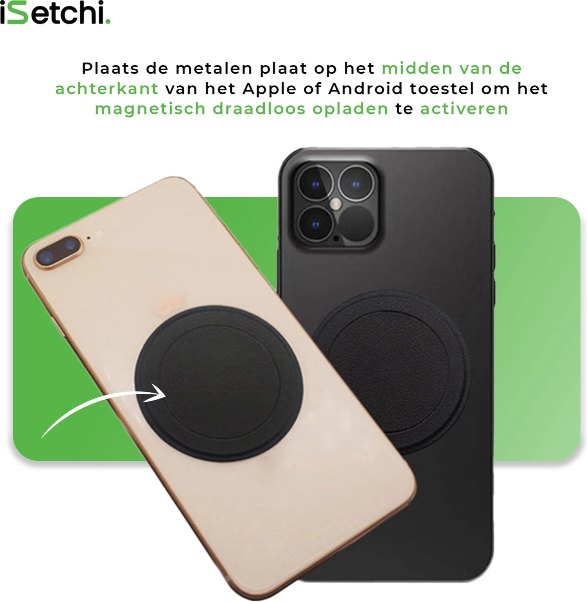 MagSafe is een systeem voor het opladen en/of bevestigen van accessoires die vanzelf vastklikken door de MagSafe technologie van je iPhone. Ondersteunt je smartphone echter geen MagSafe of verstoort het hoesje om je telefoon de MagSafe magneetkracht? Met deze MagSafe sticker zorg jij ervoor dat het MagSafe krachtveld wordt versterkt en te gebruiken is op iedere smartphone, waardoor accessoires magnetisch vastplakken op de achterkant en je telefoon altijd perfect ligt uitgelijnd bij het draadloos opladen!
