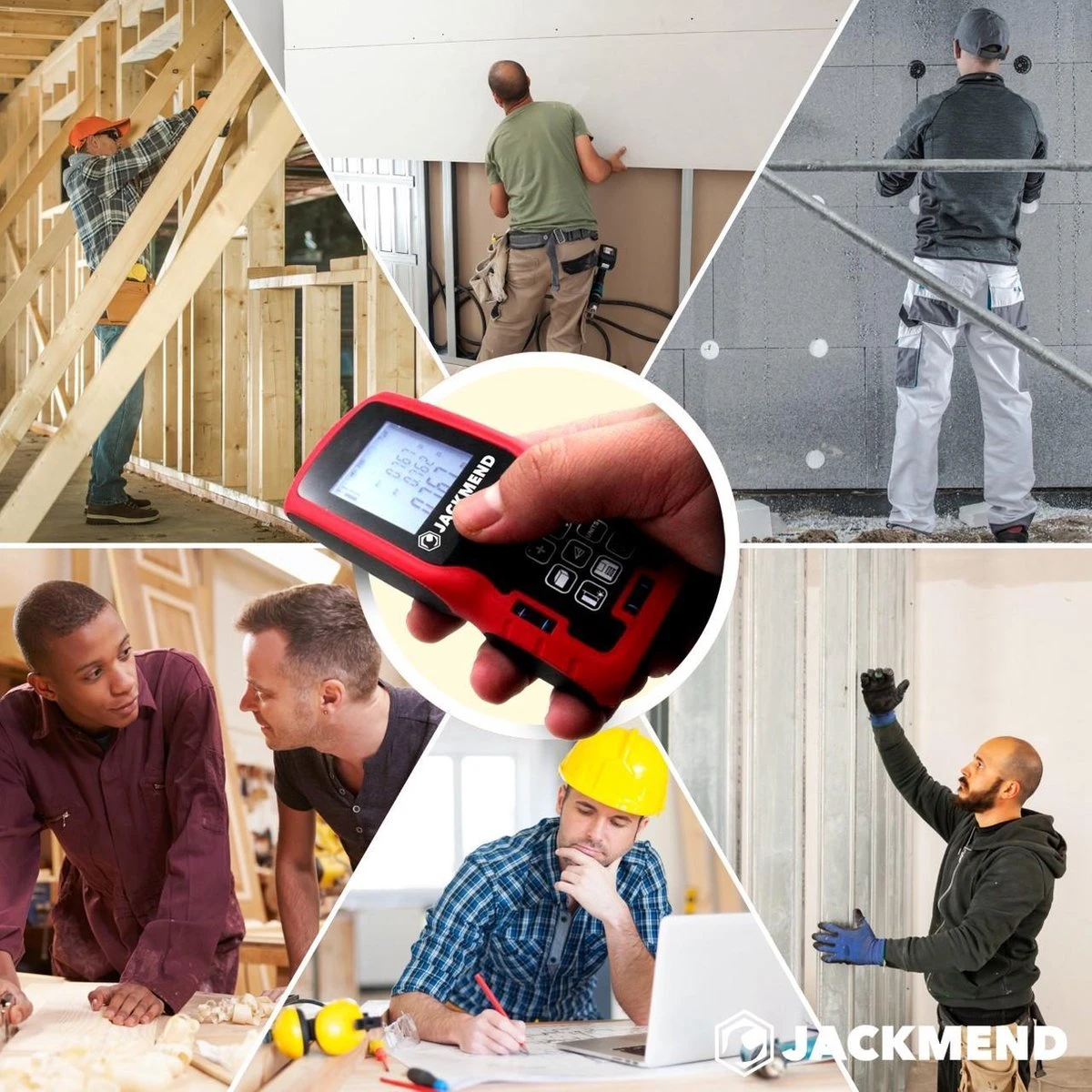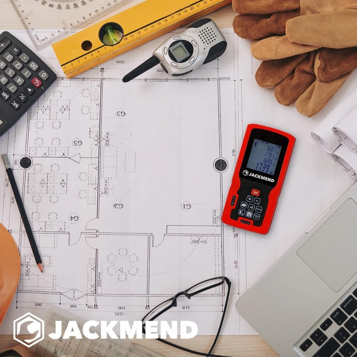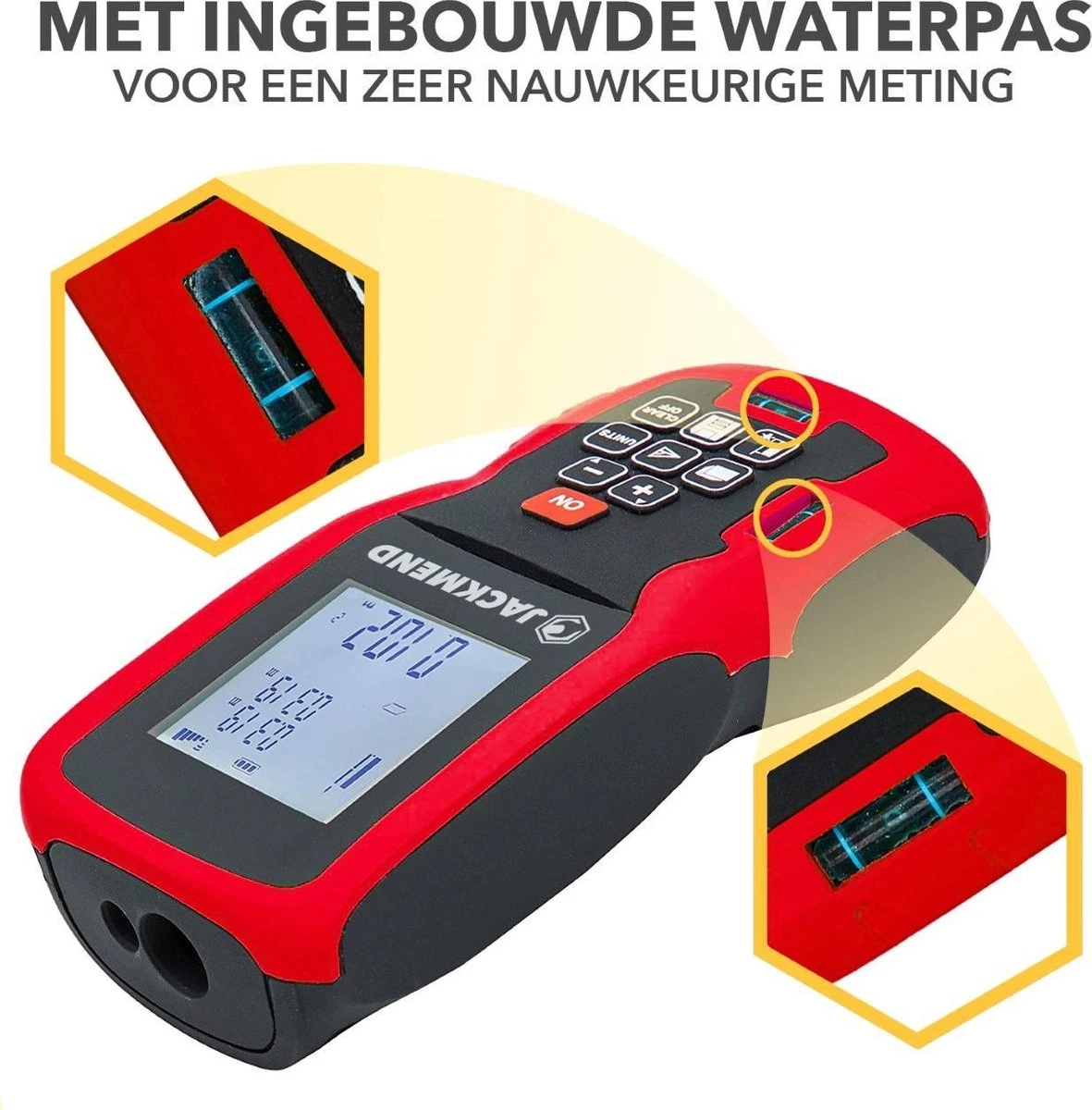 Professioneel of thuis bouwvakker? Beginner of gevorderde klusser? De compacte JACKMEND Laserafstandsmeter van AXTIES kan iedereen gebruiken! Bereken de oppervlakte, het volume, de lengte of Pythagoras in een ruimte tot wel 50 meter ver. Tot op de 1,5mm accuraat en binnen 0,1-3 seconden heb je al de benodigde cijfers. Met de benodigde CE en FDA certificaten. Inclusief gratis beschermhoes voor de schokbestendige lasermeter en AAA-batterijen. Bestel vandaag nog en breng de ultieme kwaliteitsproducten in huis met JACKMEND!