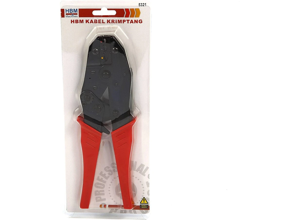 HBM Kabelkrimptang, kabelschoentang, adereindhulstang in C45 edelstaal met ergonomische handgrepen van kunststof.