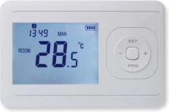 De Quality Heating ruimte klokthermostaat is geschikt voor de meeste ( Aan/Uit ) CV-ketels en vervangt alle 2-draads thermostaten.