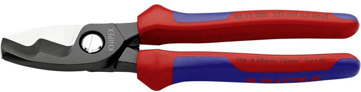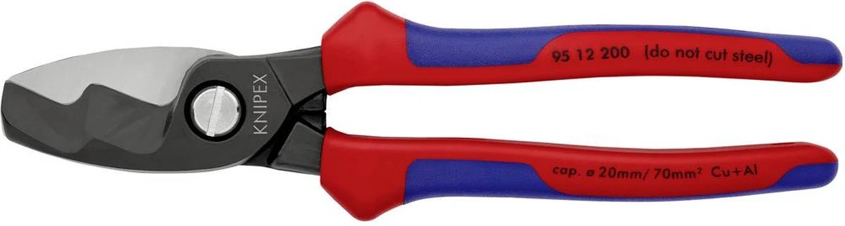 Knipex 95 12 200 95 12 200 Kabelschaar Geschikt voor (striptechniek) Alu- en koperkabel, een- en meerdraads 20 mm 70 mm