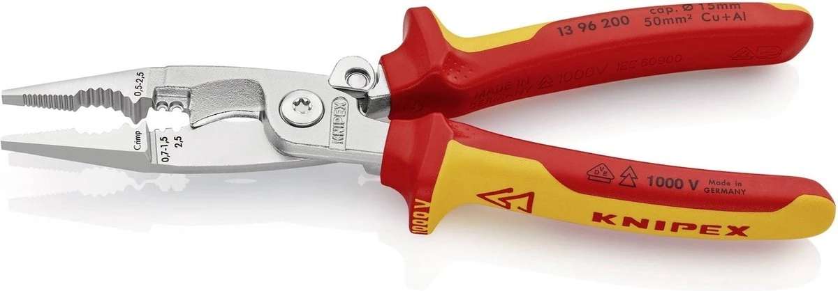 | Verpakkingsinhoud | 1 stuks Knipex Elektro Installatietang 181-250mm – 13 96 200 |