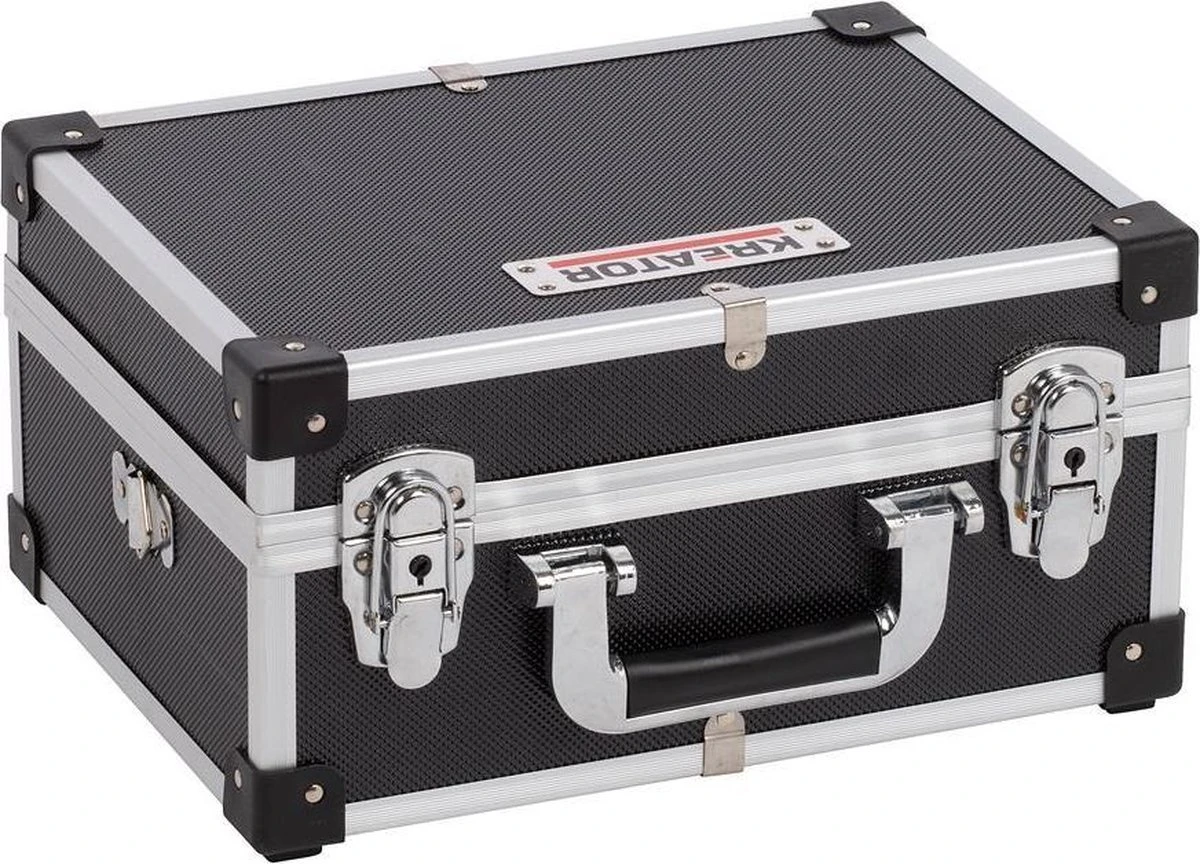 Berg al je kleine en grotere gereedschappen netjes op in deze opbergkoffer met aluminium frame van Kreator. De stevige, maar tegelijk lichte koffer met binnenbekleding meet 320 x 230 x 160mm.