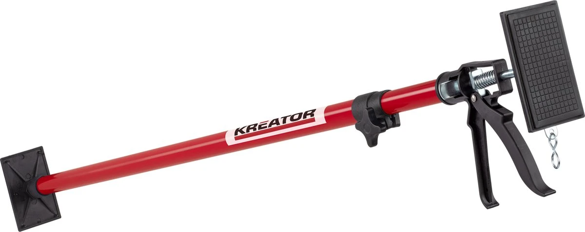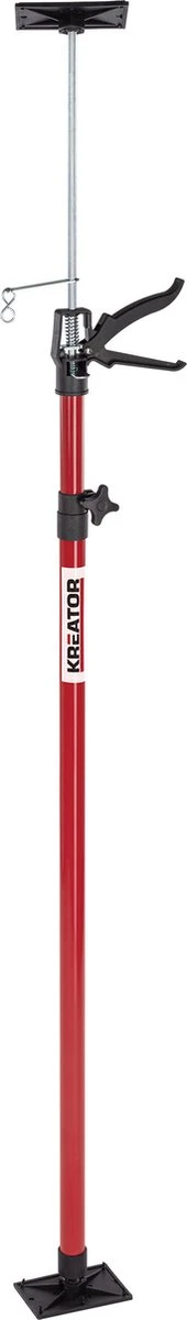 Tijdens het klussen, kom je altijd handen te kort. Daarom is er deze derde hand van Kreator. Hij ondersteunt je vals plafond, deur, schap, enzovoort en zet elk object perfect vast, zodat jij gerust je klussen kan klaren. De telescopische steun heeft een spankracht van 30 kg en een extra lang bereik tot 3 m. Zo bereik je bijna elk object dat je wenst te ondersteunen. Dat doe je bovendien in de meest ideale positie met de draaibare voetplaat en de drukplaat die je tussen 45° en 90° kan draaien. Met een gewicht van slechts 2,2 kg kan je de steun makkelijk doorheen heel je huis verplaatsen.