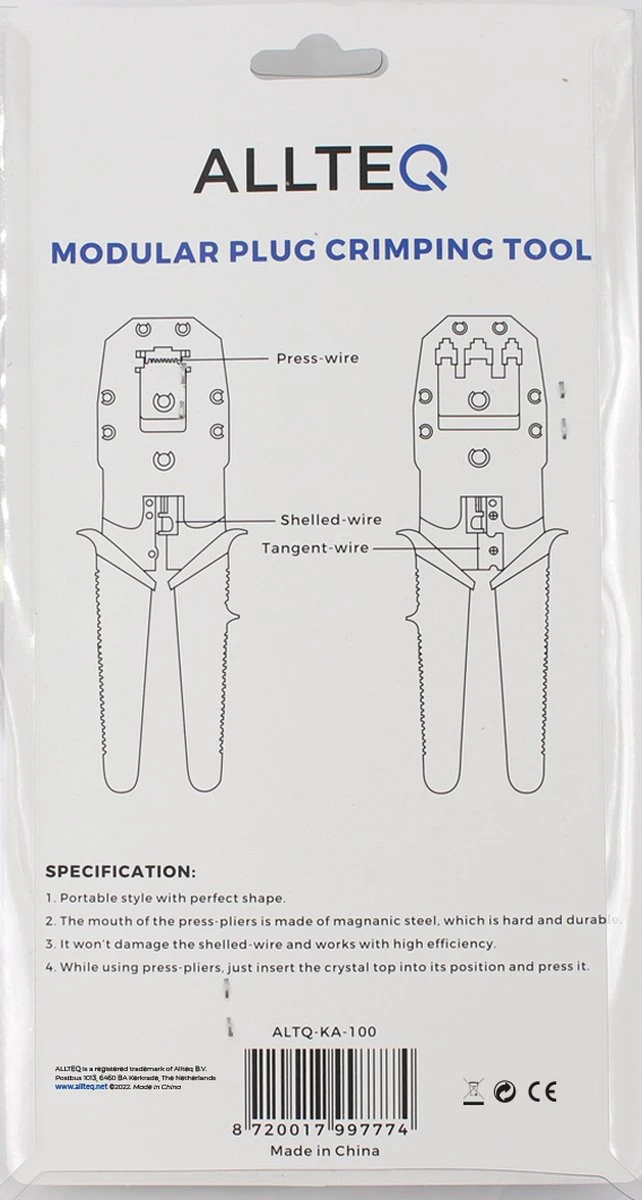 Kabels die gebruikt worden voor het verbinden van apparaten met een netwerk zijn vaak voorzien van speciale stekkers. Deze RJ-stekkers zijn bedoeld om de verbinding te leggen en beschikken over meerdere connectoren die verbonden zijn met draden in de kabel zelf. Het is natuurlijk mogelijk om gebruik te maken van dergelijke kabels met een standaard lengte. Omdat dit niet altijd het geval is, kan er ook gekozen worden om zelf een exemplaar op maat te maken en de stekkers na afloop te monteren. Dit kan door gebruik te maken van de Allteq KA 100 modulaire krimptang. Met deze tang kunnen verschillende soorten stekkers aan netwerkkabels worden gemonteerd voor een internetverbinding of voor andere doeleinden.
