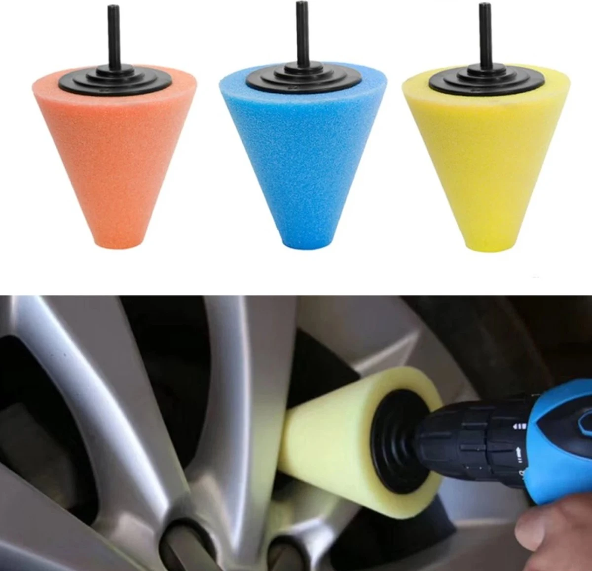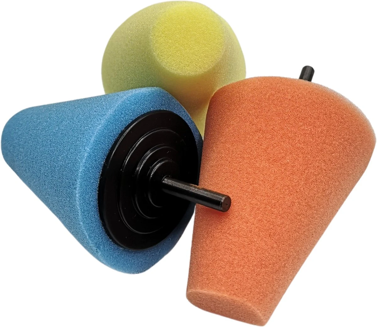 LB Tools polijstkegelset 3 delige set polijstcone voor o.a velgen, polijstset met drie conische polijstschijven voor op de boormachine.